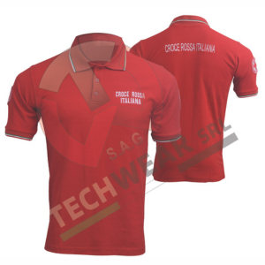 Ricamo “Croce Rossa Italiana” (schiena), Bandiera Italia ricamata (braccio sinistro), Ricami CRI Convenzione (maniche), Ricamo al petto personalizzabile